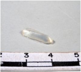 | Description / विवरण | A fragment of a rectangular shaped chalcedony blade showing dorsal sides with sharp edges having smooth surface and triangular section. |