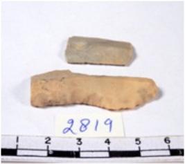 | Description / विवरण | A fragment of a rectangular shaped chert blade showing dorsal sides with sharp edges having smooth surface and triangular section. |