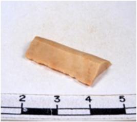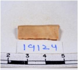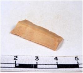 | Description / विवरण | A fragment of a rectangular shaped chert blade showing dorsal sides with sharp cutting edges having smooth surface and triangular section. |