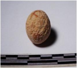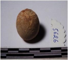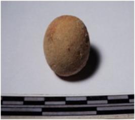 | Description / विवरण | A terracotta sling ball round in shape of smooth surface. |