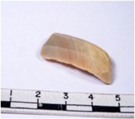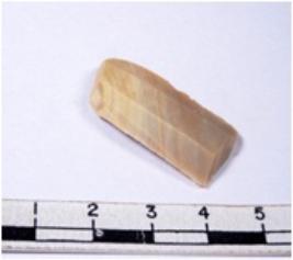 | Description / विवरण | A fragment of a rectangular shaped chert blade showing dorsal sides with sharp edges having smooth surface and triangular section. |