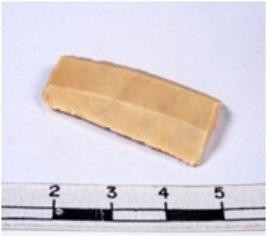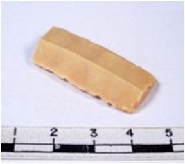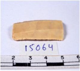 | Description / विवरण | A fragment of a rectangular shaped chert blade showing dorsal sides with sharp edges having smooth surface and triangular section. |