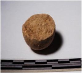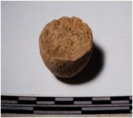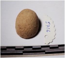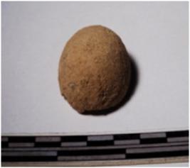 | Description / विवरण | A fragment of a terracotta sling ball round in shape of smooth surface. |