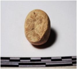 | Description / विवरण | A fragment of a terracotta round in shape sling ball, circular in section of rough surface. |