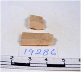 | Description / विवरण | A fragment of a rectangular shaped chert blade showing dorsal sides with sharp edges having smooth surface and triangular section. |