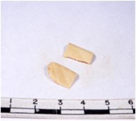 | Description / विवरण | A fragment of a rectangular shaped chert blade showing dorsal sides with sharp cutting edges having smooth surface and triangular section. |