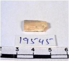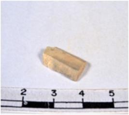 | Description / विवरण | A fragment of a rectangular shaped chert blade showing dorsal sides with sharp edges having smooth surface and uneven section. |