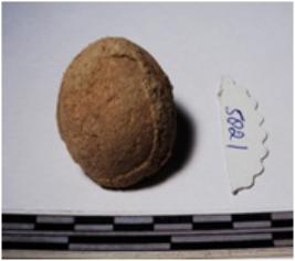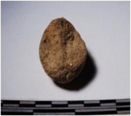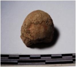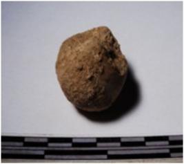 | Description / विवरण | A fragment of a terracotta sling ball globular in shape of smooth surface. |