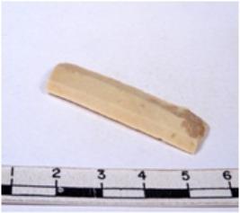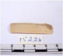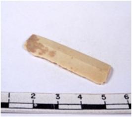 | Description / विवरण | A fragment of a rectangular shaped chert blade showing dorsal sides with sharp cutting edges having smooth surface and triangular section. |