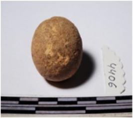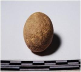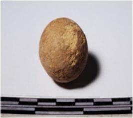 | Description / विवरण | A terracotta sling ball round in shape of smooth surface. |