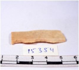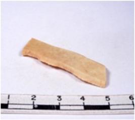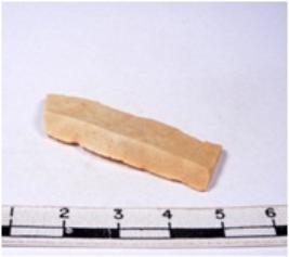 | Description / विवरण | A fragment of a rectangular shaped chert blade showing dorsal sides with sharp cutting edges having smooth surface and triangular section. |