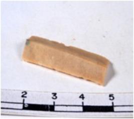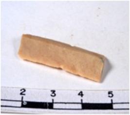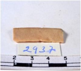 | Description / विवरण | A fragment of a rectangular shaped chert blade showing dorsal sides with sharp cutting edges having smooth surface and triangular section. |