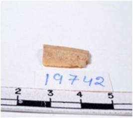 | Description / विवरण | A fragment of a rectangular shaped chert blade showing dorsal sides with sharp edges having smooth surface and triangular section. |