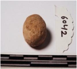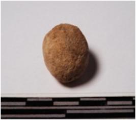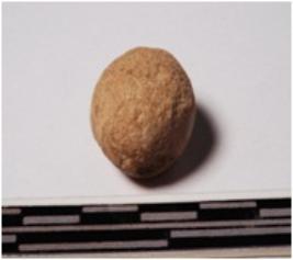 | Description / विवरण | A terracotta sling ball, round in shape of smooth surface. |
