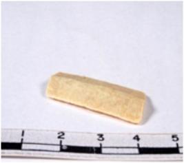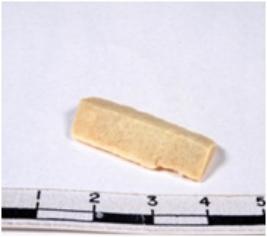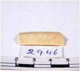 | Description / विवरण | A fragment of a rectangular shaped chert blade showing dorsal sides with sharp cutting edges having smooth surface and triangular section. |