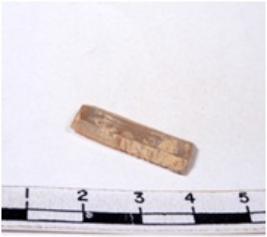 | Description / विवरण | A fragment of a rectangular shaped chert blade showing parallel sides with sharp edges having smooth surface and uneven section. |