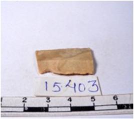 | Description / विवरण | A fragment of a rectangular shaped chert blade showing parallel sides with sharp edges having smooth surface and uneven section. |