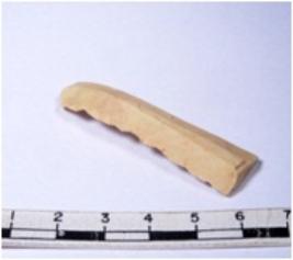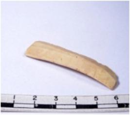 | Description / विवरण | A fragment of a rectangular shaped chert blade showing dorsal sides with sharp edges having smooth surface and triangular section. |