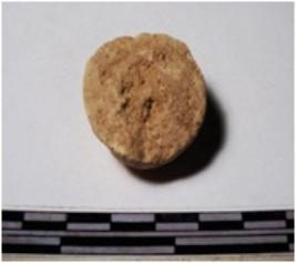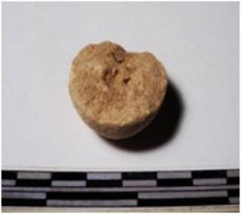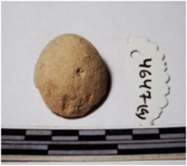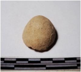 | Description / विवरण | A fragment of a terracotta round in shape sling ball, circular in section of smooth surface. |