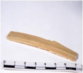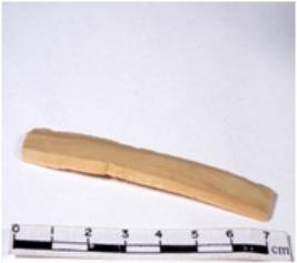 | Description / विवरण | A fragment of a rectangular shaped chert blade showing dorsal sides with sharp cutting edges having smooth surface and triangular section. |