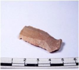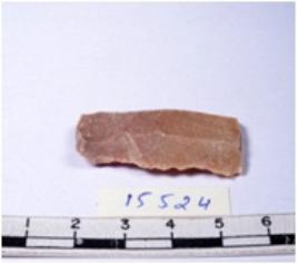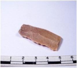 | Description / विवरण | A fragment of a rectangular shaped chert blade showing dorsal sides with sharp edges having smooth surface and triangular section. |