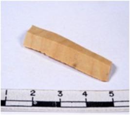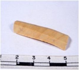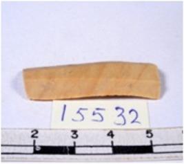 | Description / विवरण | A fragment of a rectangular shaped chert blade showing dorsal sides with sharp edges having smooth surface and triangular section. |