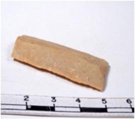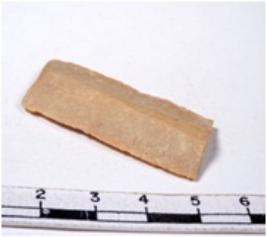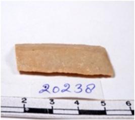 | Description / विवरण | A fragment of a rectangular shaped chert blade showing dorsal sides with sharp edges having smooth surface and triangular section. |