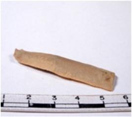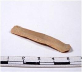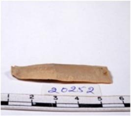| Description / विवरण | A fragment of a rectangular shaped chert blade showing dorsal sides with sharp edges having smooth surface and triangular section. |