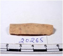 | Description / विवरण | A fragment of a rectangular shaped chert blade showing dorsal sides with sharp edges having smooth surface and triangular section. |
