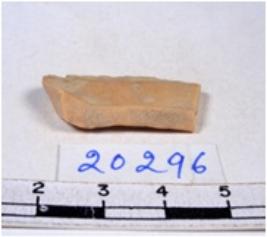 | Description / विवरण | A fragment of a rectangular shaped chert blade showing dorsal sides with sharp cutting edges having smooth surface and triangular section. |