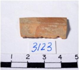 | Description / विवरण | A fragment of a rectangular shaped chert blade showing chert blade showing dorsal sides with sharp cutting edges having rough surface and triangular section. |