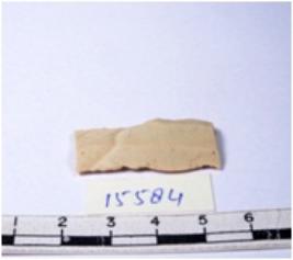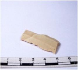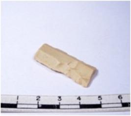 | Description / विवरण | A fragment of a rectangular shaped chert blade showing dorsal sides with showing dorsal sides with sharp edges having smooth surface and triangular section. |