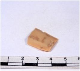 | Description / विवरण | A fragment of a rectangular shaped chert blade showing dorsal sides with sharp edges having smooth surface and triangular section. |