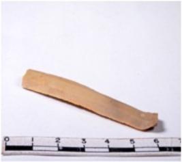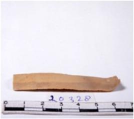 | Description / विवरण | A fragment of a rectangular shaped chert blade showing dorsal sides with sharp edges having smooth surface and triangular section. |