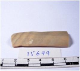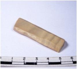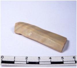 | Description / विवरण | A fragment of a rectangular shaped chert blade showing dorsal sides with sharp edges having smooth surface and triangular section. |