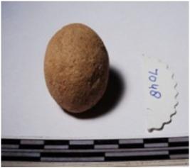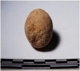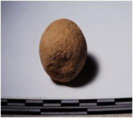 | Description / विवरण | A terracotta sling ball round in shape of smooth surface. |