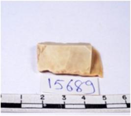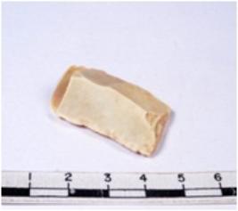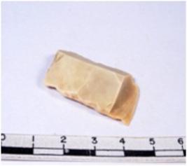 | Description / विवरण | A fragment of a rectangular shaped chert blade showing dorsal sides with sharp edges having smooth surface and triangular section. |