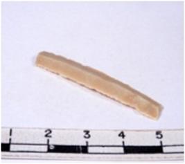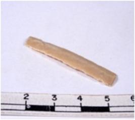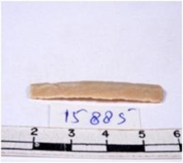 | Description / विवरण | A fragment of a rectangular shaped chert blade showing parallel sides with sharp edges having smooth surface and triangular section. |