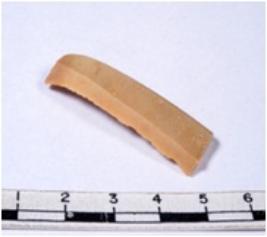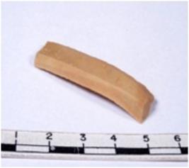 | Description / विवरण | A fragment of a rectangular shaped chert blade showing parallel sides with sharp cutting edges having smooth surface and triangular section. |
