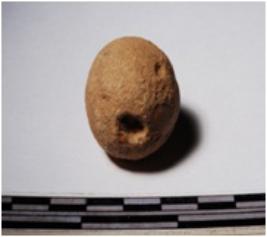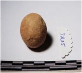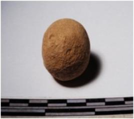 | Description / विवरण | A terracotta sling ball round in shape of smooth surface. |