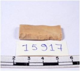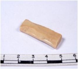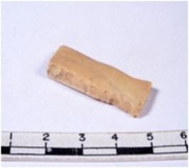 | Description / विवरण | A fragment of a rectangular shaped chert blade showing dorsal sides with sharp edges having smooth surface and triangular section. |