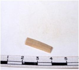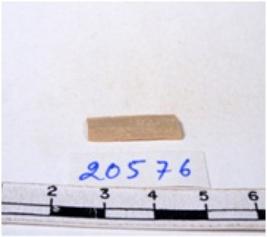 | Description / विवरण | A fragment of a rectangular shaped chert blade showing dorsal sides with sharp cutting edges having smooth surface and triangular section. |