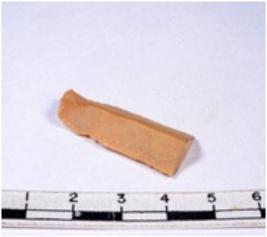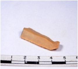 | Description / विवरण | A fragment of a rectangular shaped chert blade showing dorsal sides with sharp cutting edges having smooth surface and triangular section. |