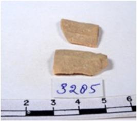 | Description / विवरण | A fragment of a rectangular shaped chert blade showing dorsal sides with sharp cutting edges having smooth surface and triangular section. |