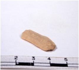 | Description / विवरण | A fragment of a rectangular shaped chert blade showing dorsal sides with sharp edges having smooth surface and triangular section. |