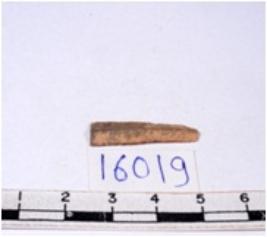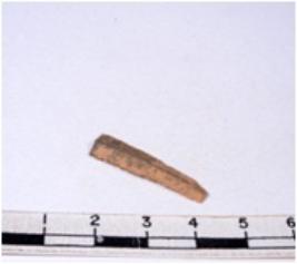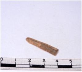 | Description / विवरण | A fragment of a rectangular shaped chert blade showing dorsal sides with sharp edges having smooth surface and triangular section. |