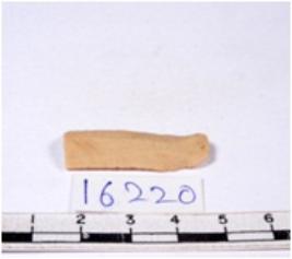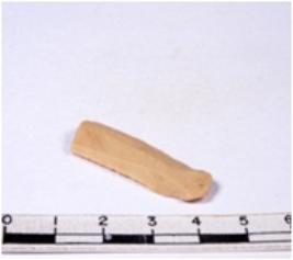 | Description / विवरण | A fragment of a rectangular shaped chert blade showing dorsal sides with sharp edges having smooth surface and triangular section. |