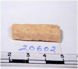 | Description / विवरण | A fragment of a rectangular shaped chert blade showing parallel sides with sharp edges having smooth surface and uneven section. |