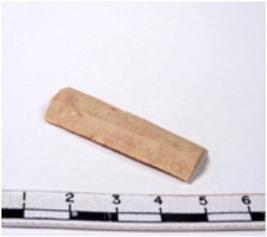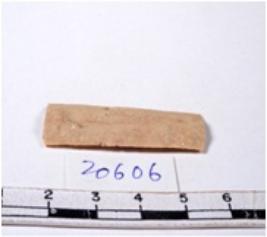 | Description / विवरण | A fragment of a rectangular shaped chert blade showing dorsal sides with sharp edges having smooth surface and triangular section. |