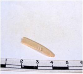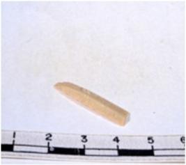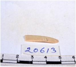 | Description / विवरण | A fragment of a rectangular shaped chert blade showing dorsal sides with sharp edges having smooth surface and triangular section. |